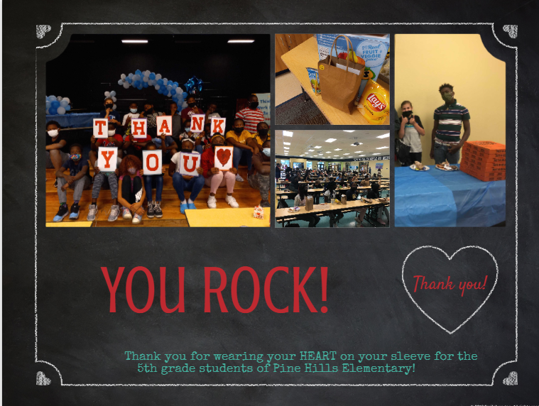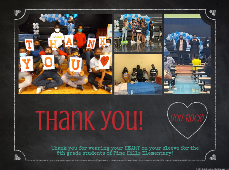 HUGE THANK YOU TO PRINCIPAL SMOTHERS AND ASSISTANT PRINCIPAL ELMORE AND PINE HILLS STAFF FOR ALLOWING US TO GIVE BACK TO THE STUDENTS!.